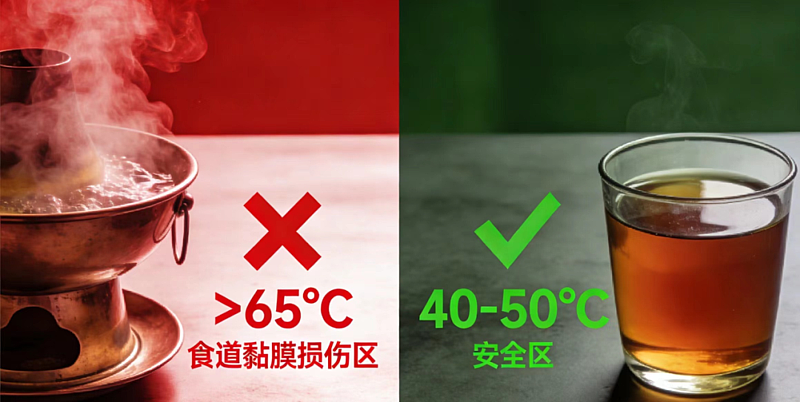 食管黏膜非常脆弱,长期吃滚烫的火锅、热茶、热汤,反复烫伤会增加风险。食物晾至40–50℃,手感温热不烫口再吃;吃火锅时,先在碟子里放凉一会儿再入口。