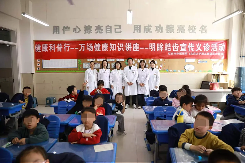 为进一步提升青少年口腔与眼部健康防护意识,助力青少年健康成长,近日,延安市中医医院(北京大学第三医院延安分院)口腔科、眼科医护团队,走进延安新区第二小学,围绕“健康口腔 幸福生活”主题,为一年级全体学生开展了一场集口腔健康科普、刷牙实操教学、护眼知识宣讲及视力筛查活动,将专业的健康知识与贴心服务送进课堂,切实守护青少年身心健康。