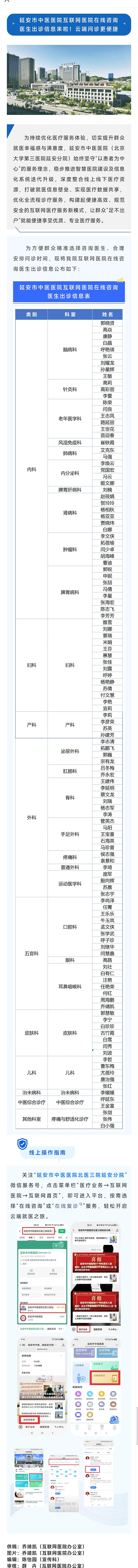 延安市中医医院互联网医院在线咨询医生出诊信息来啦!云端问诊更便捷
