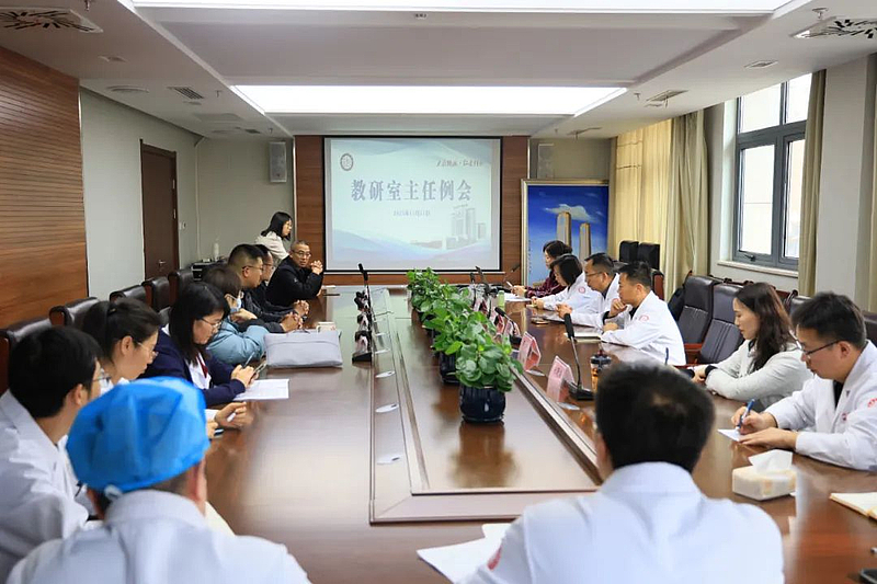 医疗、教学、科研工作相辅相成,教研室主任例会是落实教学任务、加强教学管理、强化教学意识的重要措施,充分发挥教研室在教学、科研、管理等工作中的作用,才能全面提升医院教学质量。教研室例会的召开将进一步提升教师思想认识,明确责任和义务,切实增强做好教研工作的责任感、使命感、紧迫感,加强师资队伍建设及教学管理,把临床技能教学体系、临床教学基地建设及临床实习教学质量作为工作重点,强化工作措施,掌握医学教育发展方向、更新临床教育教学理念,推动教学工作有序开展,为培养高质量高素质医学人才共同努力。