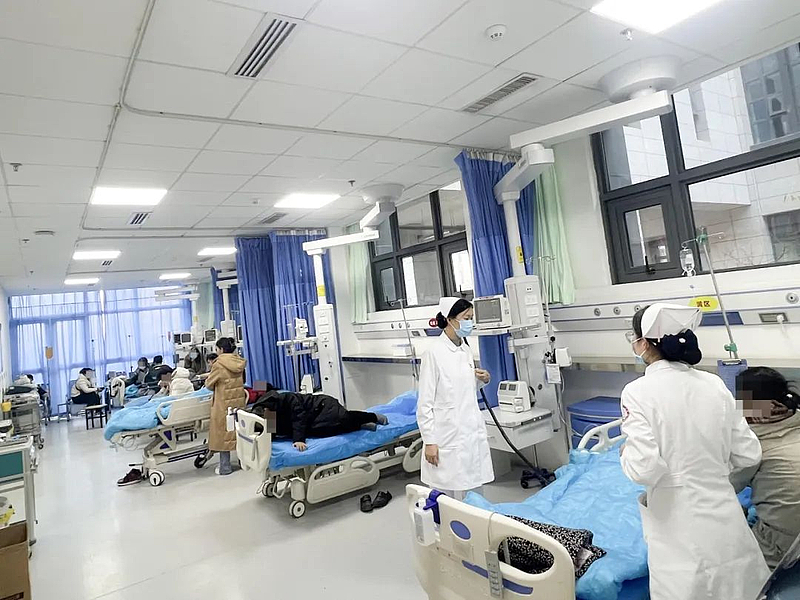 8点35分,由于冬季的来临,气温急剧下降,昼夜温差较大,延安市中医医院(北京大学第三医院延安分院)急诊科迎来了许多因肺炎支原体、病毒和细菌感染引起咳嗽、发热的患者。每日门诊接诊量达200余人,需留观的患者达30人,均需要静脉输液治疗。急诊科联合穴位贴敷、拔罐、耳尖放血(耳尖、少商等)中医特色疗法,中西医协同治疗,缓解患者的痛苦。