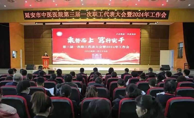 2024年1月27日,延安市中医医院(北京大学第三医院延安分院)第三届一次职工代表大会暨2024年工作会在医院学术报告厅召开。市卫健委党委书记、主任胡生凡,市总工会常务副主席宋殿勇,市总工会市直工会工作部部长张小娟,市卫健委中医科科长白益萌应邀参会。院党委书记刘雁冰、院长郭莉、院领导班子成员、北京大学第三医院驻延专家、延安第三医疗集团各分院主要负责人、全体中层干部、职工代表、受表彰人员参加了会议。