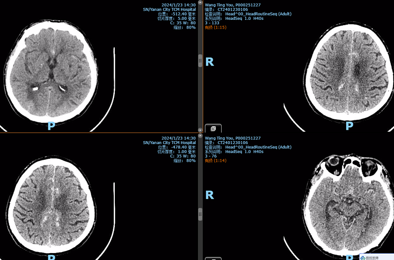 入院后患者查颅脑CT见蛛网膜下腔出血,北京驻延脑外科专家陈素华,脑外科主任田德洲和董永军副主任详细查看患者病情、结合患者2次脑梗死病史及相关检查结果,考虑患者大脑前动脉瘤破裂出血可能,需要手术治疗。脑外科团队立即向患者家属详细告知患者病情,并征得患者家属同意。