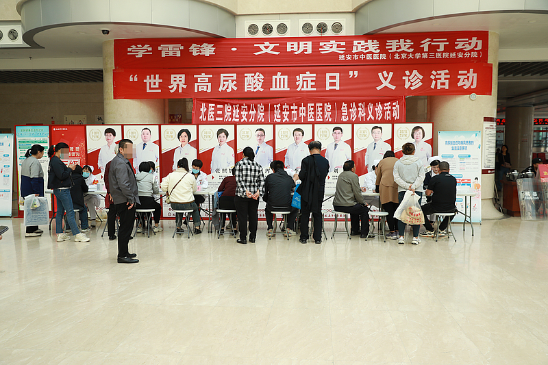 2024年4月20日是第8个“世界高尿酸血症日”,为了让更多群众关注自身健康,正确认识高尿酸血症的危害,4月18日,延安市中医医院(北京大学第三医院延安分院)肾病科携手内分泌科、急诊科开展了“精准防控、畅享生活”世界高尿酸血症日主题义诊宣教活动。