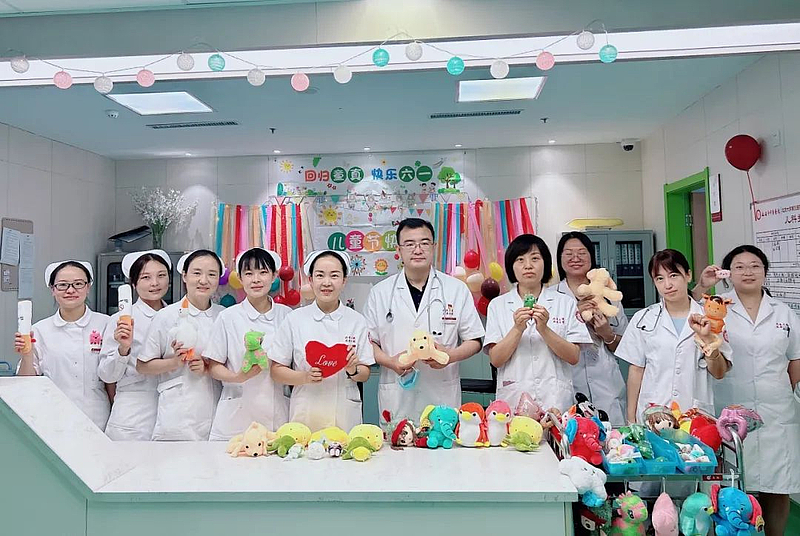 六一儿童节的上午,五颜六色的彩带和气球将儿科病房装饰成一片童趣的世界,让每位住院的小朋友和家长都感受到了中医医院儿科医护浓浓的爱心。