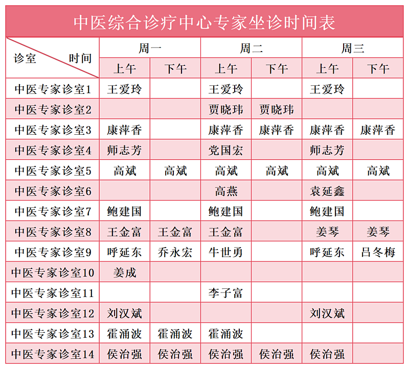 医师出诊时间如遇特殊情况有变动,以当日安排为准,敬请谅解!