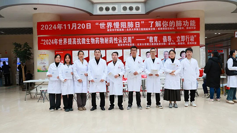 2024年11月18日~24日是“世界提高抗微生物药物认识周”,近日,延安市中医医院(北京大学第三医院延安分院)药剂科联合宣传科、肺病科等科室在门诊大厅开展了以“教育、倡导、立即行动”为主题的微生物药物认识周宣传活动。活动旨在向广大市民传播抗微生物药物合理使用的相关专业知识,进一步提高对抗微生物药物全球耐药危机的认识,遏制微生物耐药情况的发展与蔓延,守护市民健康防线。