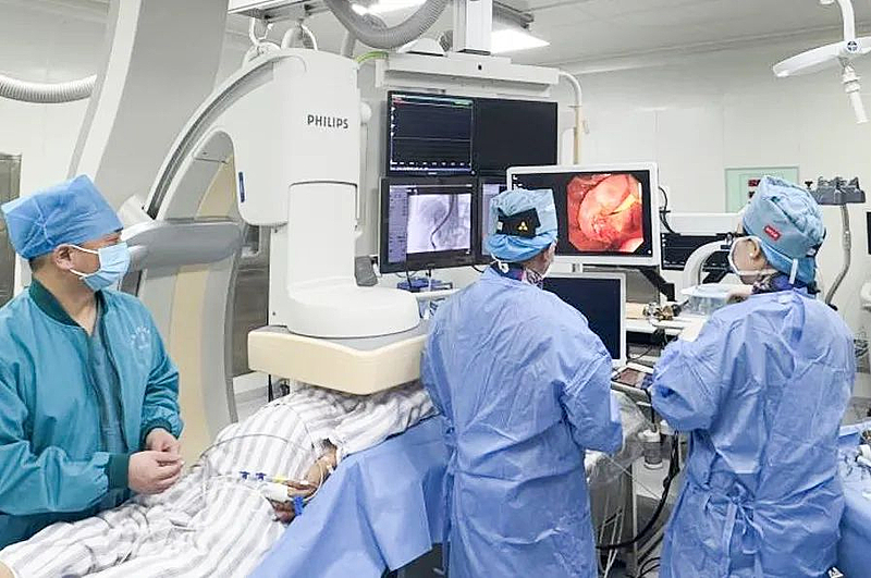 85岁的女性患者因为突发上腹痛急来我院就诊,CT检查提示胆总管结石,肝功化验转氨酶明显升高,患者既往有房颤、脑梗死等病史。入院后病情危重,有发生感染性休克、心衰恶化、多脏器衰竭的可能,手术麻醉风险较大。经过消化内科(脾胃病科)郭锐主任、重症医学科贺小龙主任和麻醉手术科陈明安副主任讨论,制定了先为患者施行ENBD(鼻胆管引流术)解除梗阻,待患者生命体征相对平稳后,再施行ERCP手术取出结石的治疗方案。与患者及家属沟通并征得同意后,专家团队仅用时五分钟完成ENBD,胆管内大量脓液顺利引流。术后患者转入重症医学科加强监护及治疗,经过四天的术前准备及治疗,患者的感染得到控制,随后顺利实施了不插管全麻下ERCP手术,患者目前已顺利出院。