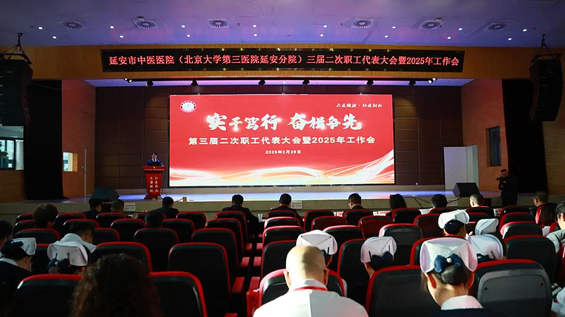 2025年2月25日,延安市中医医院(北京大学第三医院延安分院)召开第三届二次职工代表大会暨2025年工作会。市卫生健康委员会副主任王浩,市总工会党组成员、常务副主席周莉,市总工会市直工会工作部部长张小娟应邀参加,院党委书记刘雁冰、院长郭莉及院领导班子成员、北医三院驻延专家团队、延安第三医疗集团各分院主要负责人,全体中层干部、职工代表、受表彰人员参加。