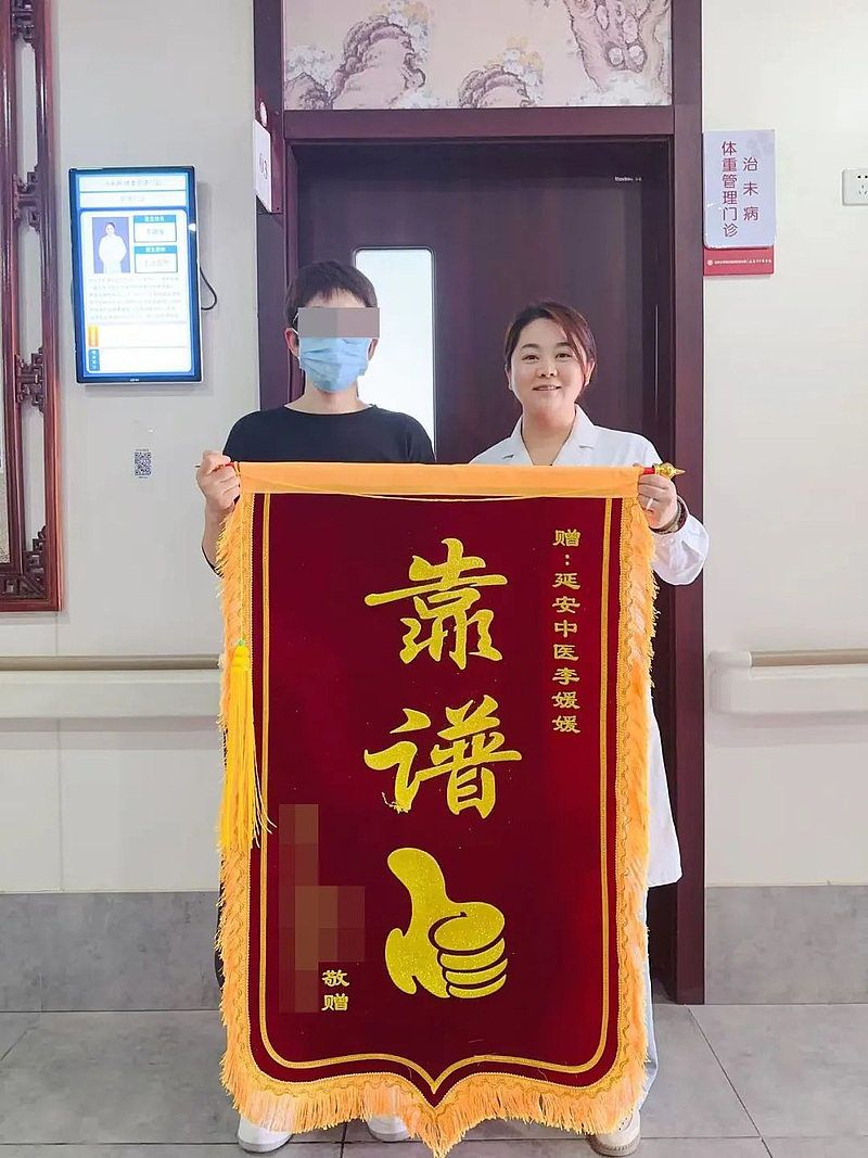 “肚子小了,人也精神了!感谢李医生的精心治疗”患者为李媛媛医师送来锦旗表示感激。近日,一位35岁的女性患者,身高165cm,初始体重90kg,四肢纤细但腹部膨隆,日常易疲劳、腹胀,大便溏稀不成形。经李媛媛医师诊断为“脾虚痰湿型肥胖”,采用腹部铺灸+中药+针灸+埋线的综合调理方案。患者经过一个三伏周期的综合治疗后,体重下降22斤,腰围减少10cm,困扰多年的肠胃问题也得到改善。