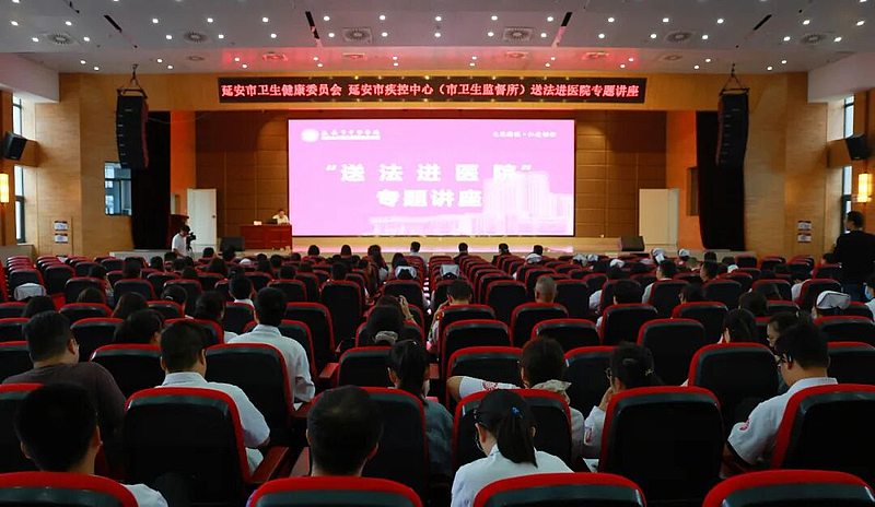 2025年8月28日,延安市卫生健康委员会、延安市卫生监督所“送法进医院”活动为延安市中医医院(北京大学第三医院延安分院)医务人员进行了一场生动、高质量的普法专题讲座。延安市卫生健康委员会法监科科长李梦茹,延安市疾控中心(市卫生监督所)主任、所长白瑾,副主任、副所长齐小莉,我院党委书记刘雁冰,院长郭莉及院领导班子成员,各临床、医技、行政职能科室人员参加。