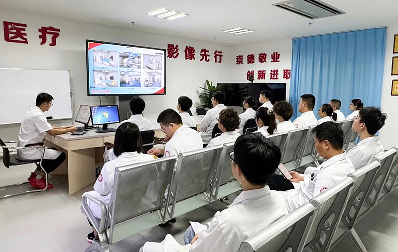 为切实提升培训实效,本次培训紧扣临床核心需求,构建起理论与实践深度融合的系统化课程体系。影像科精心组建了一支由副主任医师、资深主治医师、经验丰富的技师及护师组成的讲师团队,围绕科室规章制度、工作流程、学习安排,影像设备安全操作规范,辐射防护核心要点,诊断报告标准化书写,造影剂规范使用及不良反应应急处置,医患沟通技巧,院感防控要点及应急疏散演练等重点内容,开展了兼具专业性与实用性的详尽讲解和现场演示。