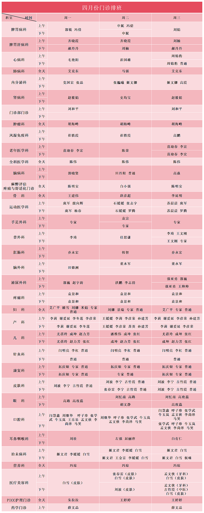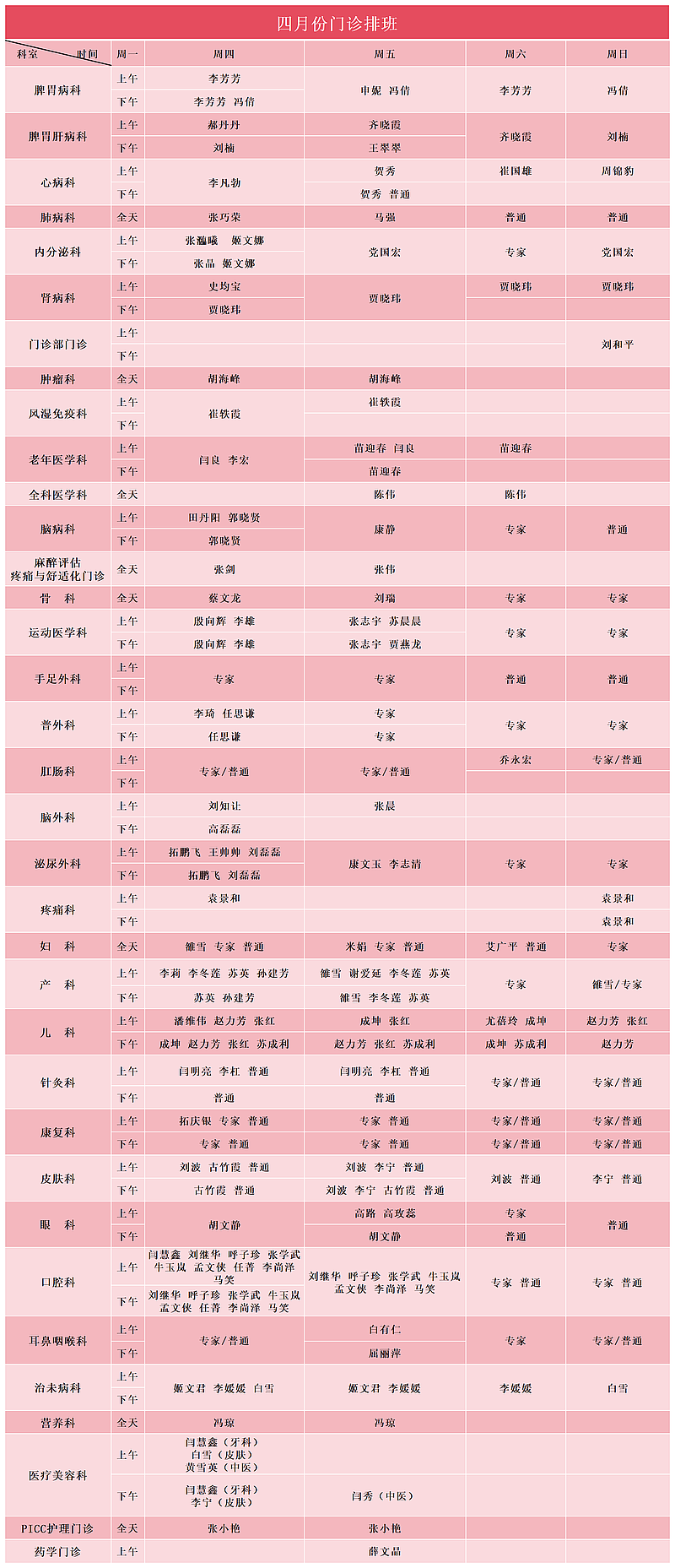 2026年4月门诊安排